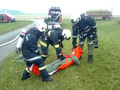 Zu bergen waren 2 Gasflaschen, welche im dichten Nebel vom Atemschutztrupp ausfindig gemacht werden mussten.