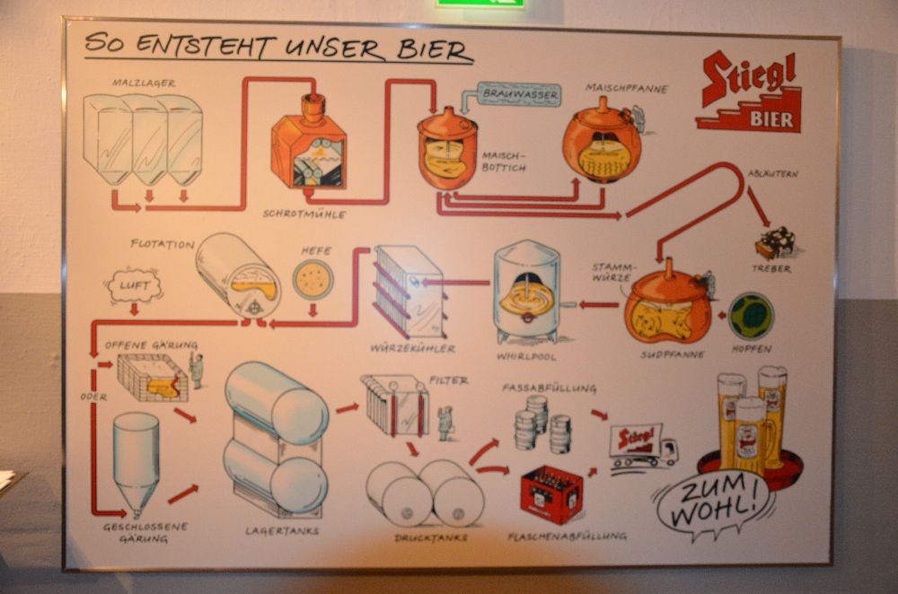 Im Anschluss daran ging es weiter zur Brauwelt der Brauerei Stiegl. Bei einer Führung wurde uns die aufwendige Arbeit des Bierbrauens näher gebracht. Weiters konnte der größte Bierturm Europas mit den verschiedensten Biersorten besichtigt werden.
