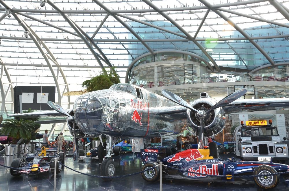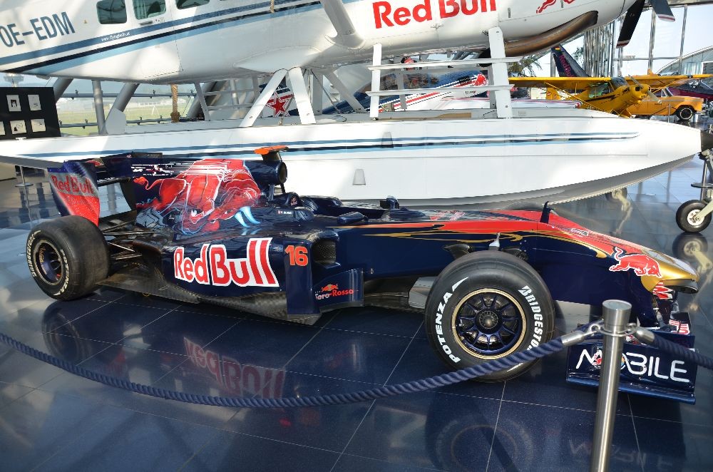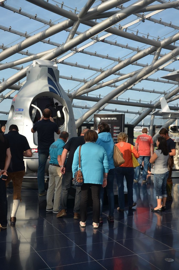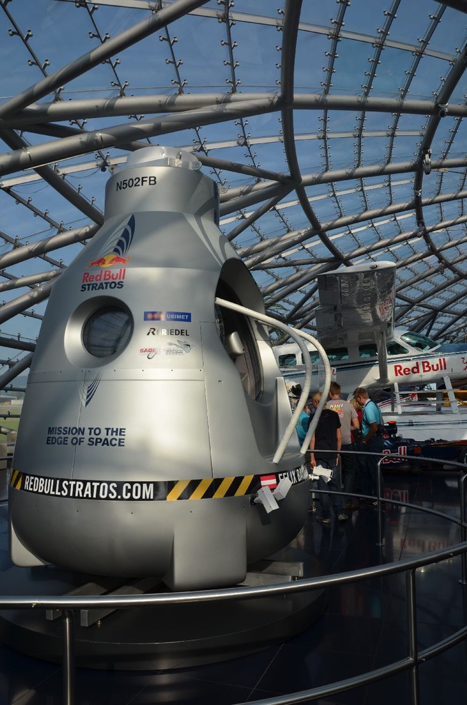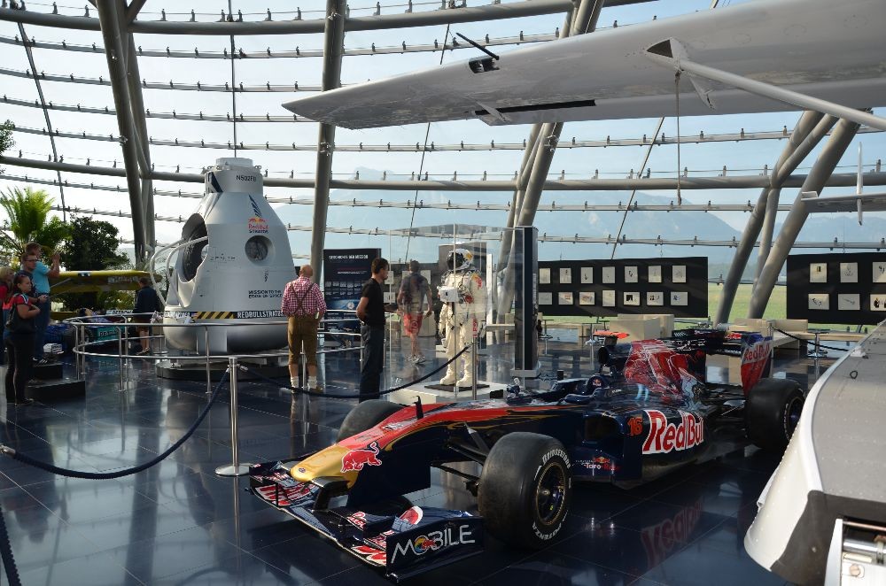Unser erstes Ziel war der Hangar 7 am Flughafen Salzburg. Dort konnten die einzigartige Architektur des Gebäudes sowie verschiedenste Ausstellungsobjekte von Red Bull besichtigt werden. Darunter befanden sich die Formel 1-Wagen der vergangenen Jahre, sowie die Stratos Kapsel von Felix Baumgartners Weltrekord-sprung.