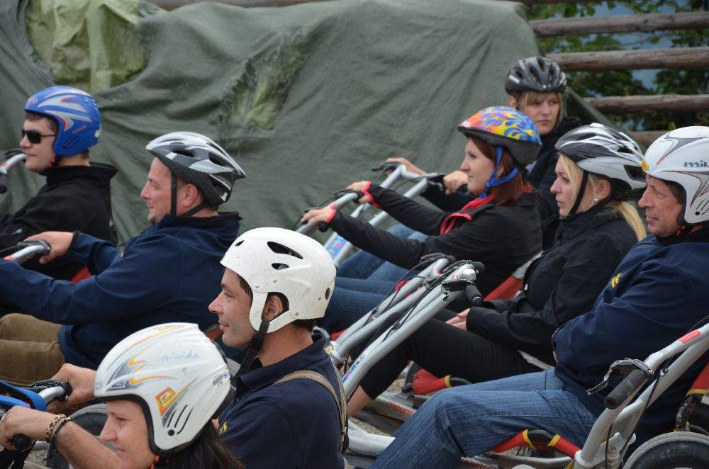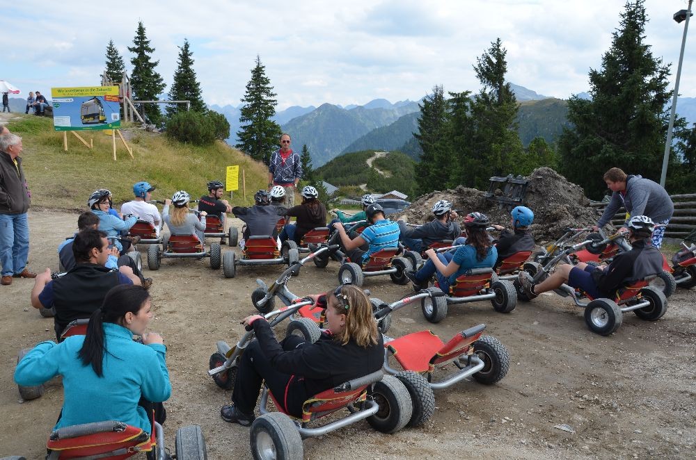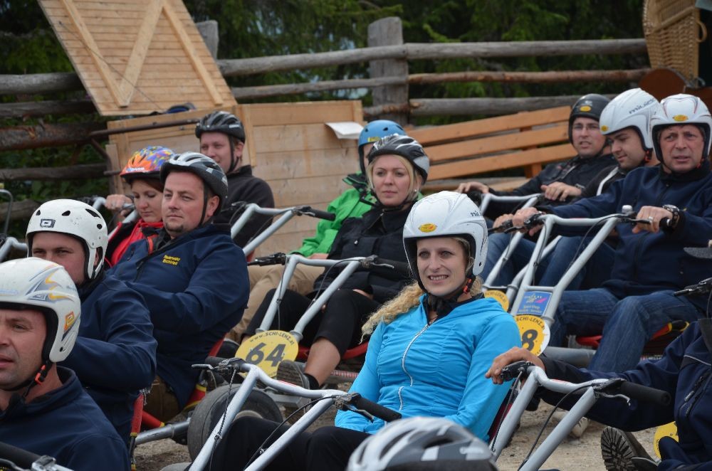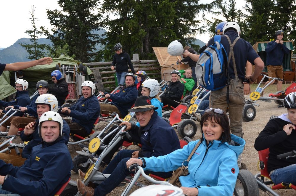 Die Talfahrt wurde anschließend mit GoKarts in Angriff genommen. Auf einer Strecke von ca. 7km demonstrierten die Feuerwehrkameraden und ihre PartnerInnen bei vielen Kehrkurven und lange Geraden ihre Fahrkünste.