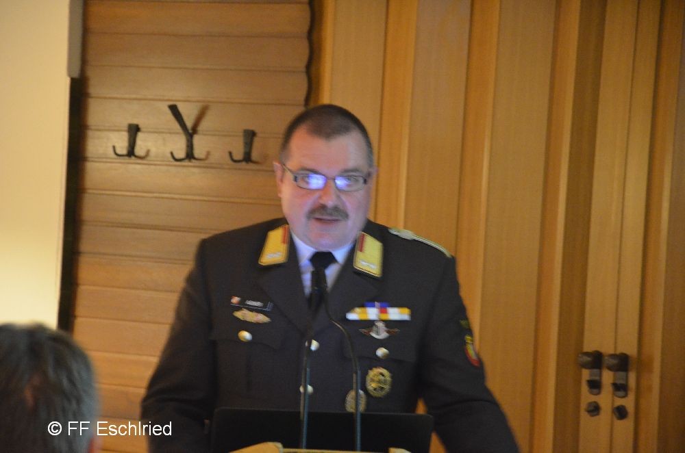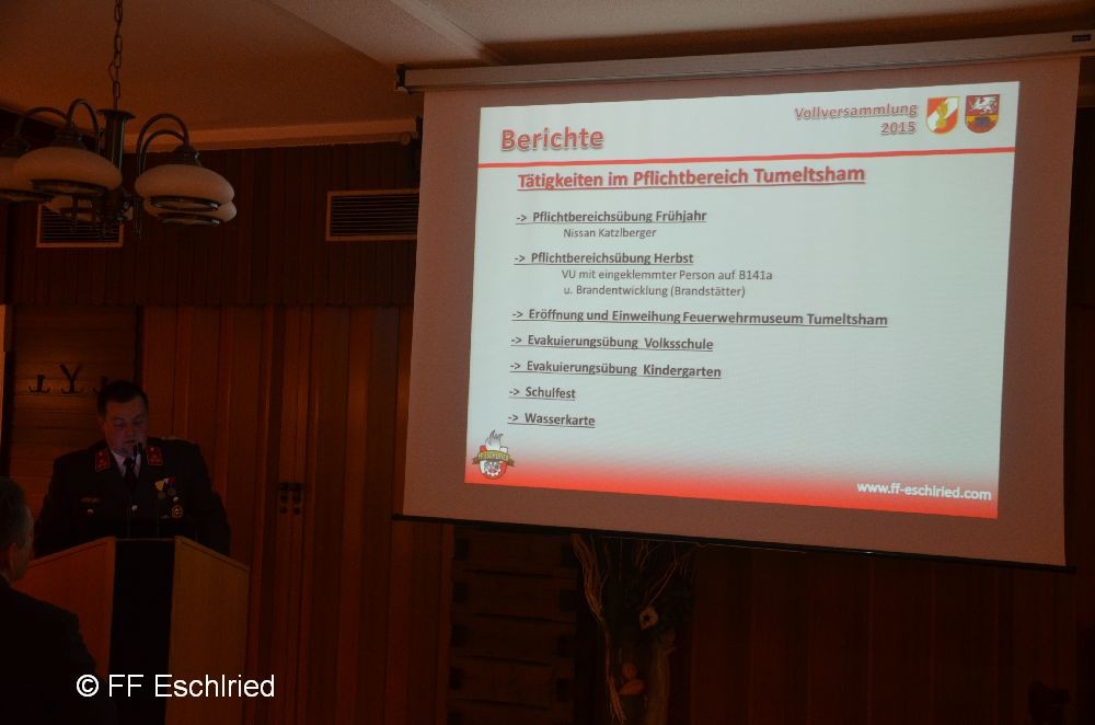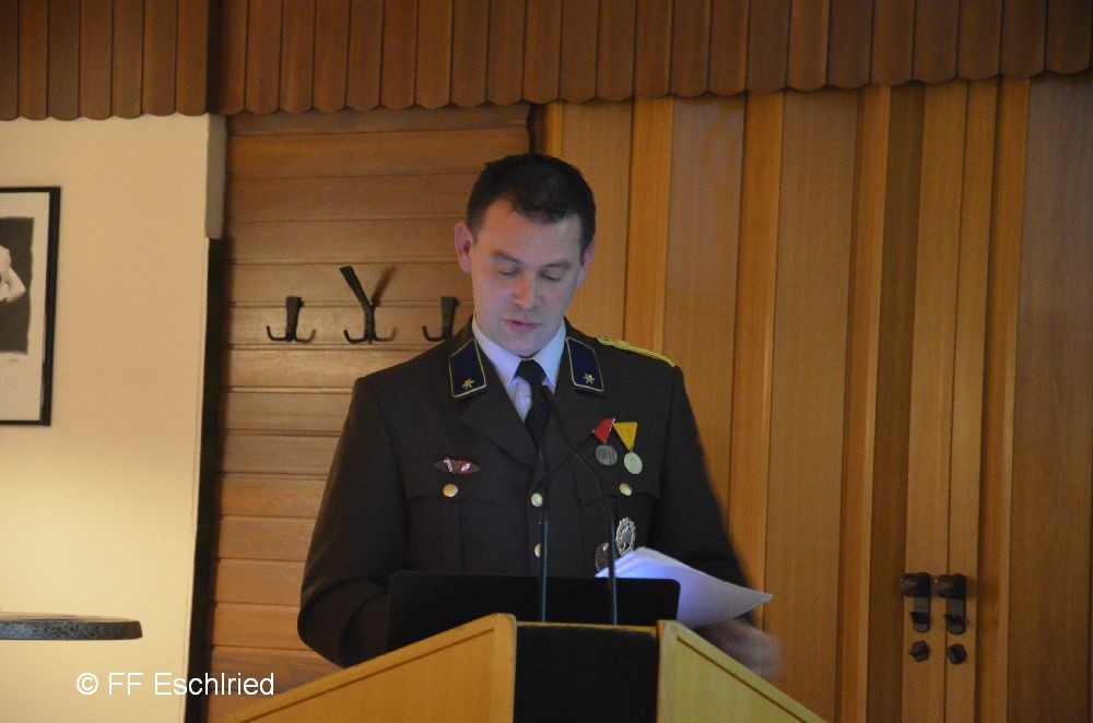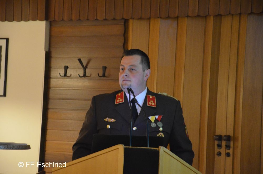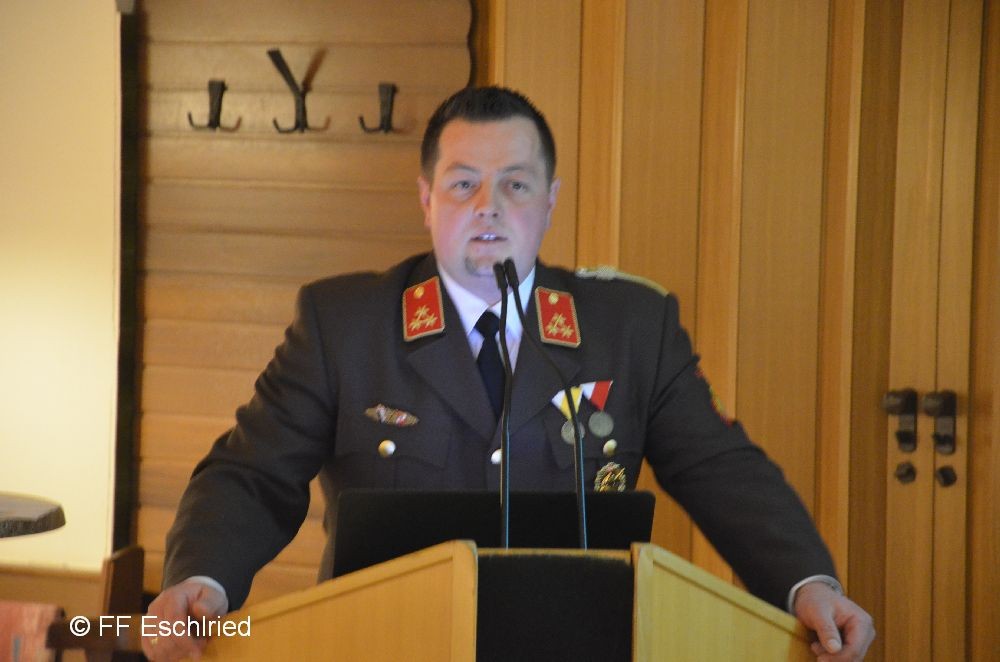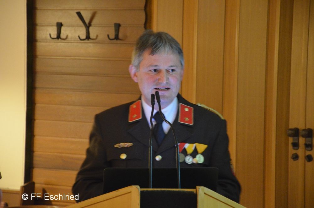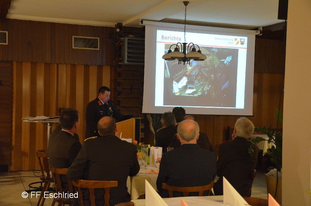 Auch die Feuerwehr Eschlried wurde mehrmals erwähnt. So zum Beispiel traten vier Kameraden beim Funkleistungsabzeihen an, das technische Hilfeleistungsabzeichen wurde gemeinsam mit den Feuerwehren Tumelthsam und Eschlried durchgeführt und am Jahresbeginn traten zwei Gruppen bei der Atemschutzleistungsprüfung an.