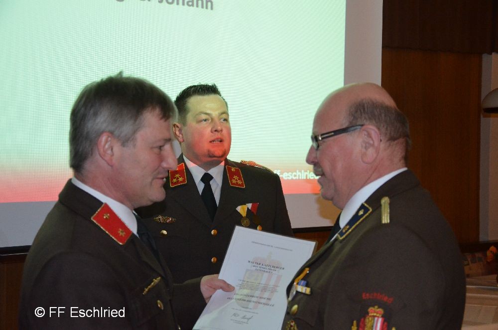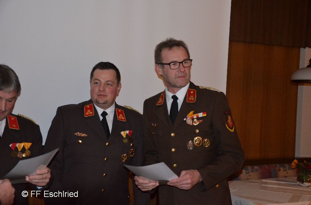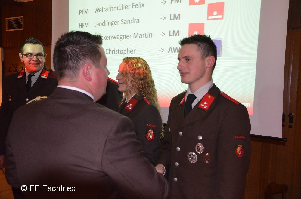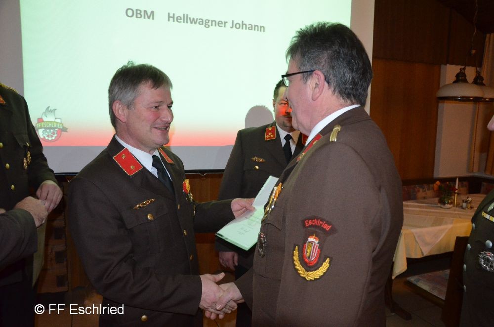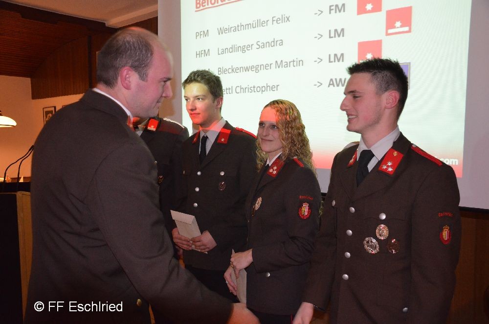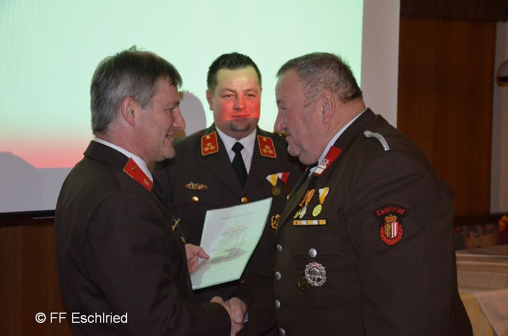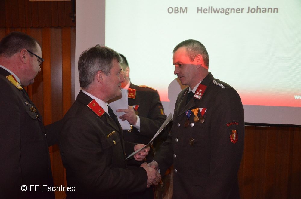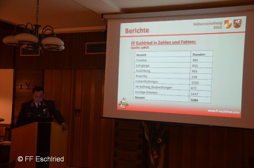 Auch die Feuerwehr Eschlried wurde mehrmals erwähnt. So zum Beispiel traten vier Kameraden beim Funkleistungsabzeihen an, das technische Hilfeleistungsabzeichen wurde gemeinsam mit den Feuerwehren Tumelthsam und Eschlried durchgeführt und am Jahresbeginn traten zwei Gruppen bei der Atemschutzleistungsprüfung an.